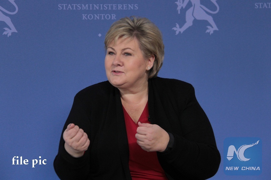 Norwegian Prime Minister Erna Solberg speaks to Chinese media during an interview in Oslo, Norway, on April 6, 2017.(Xinhua/Zhang Shuhui)