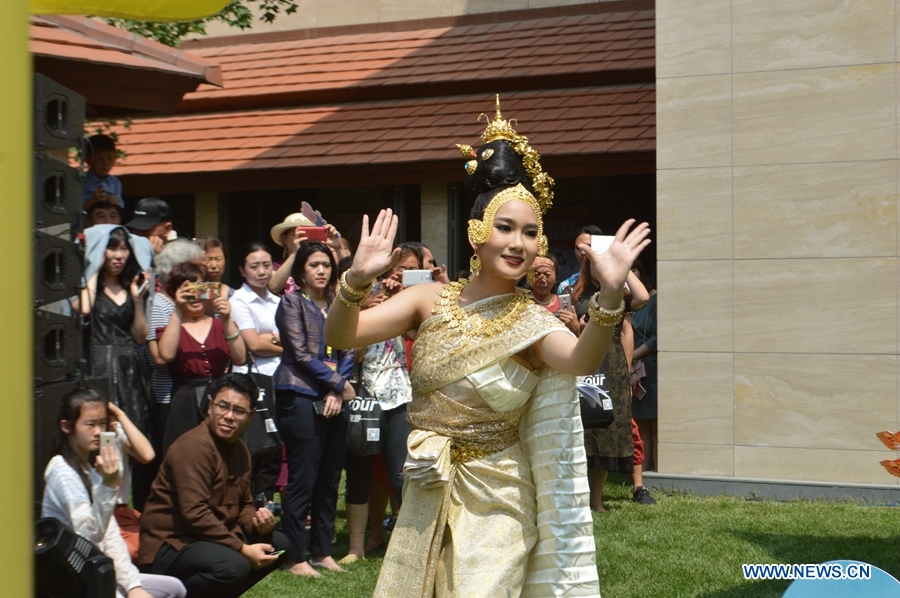 A Thai dancing show is staged at the Thai Festival 2018 “Spice up Your Day with Thai Tastes”. The festival was held at the Royal Thai Embassy, Beijing, June 23, 2018. This is the second time that the Thai Festival is organised here as guests can enjoy various activities in the midst of Thai surroundings. (Xinhuanet/Liang Yurou)