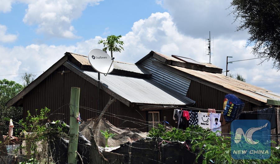 File photo taken on Nov. 30, 2016 shows a local house with a satellite digital television device provided by Chinese media company StarTimes in Kenya. (Xinhua/Li Baishun)