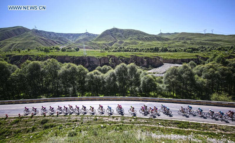 Cyclists compete in the fourth stage of the Tour of Qinghai Lake in northwest China's Qinghai Province, on July 25, 2018. (Xinhuanet Photo by Jia Haiyuan)