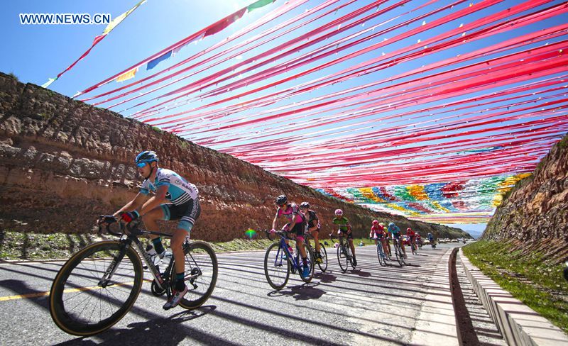 Cyclists compete in the fourth stage of the Tour of Qinghai Lake in northwest China's Qinghai Province, on July 25, 2018. (Xinhuanet Photo by Jia Haiyuan)