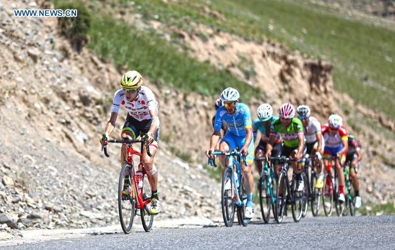 Cyclists compete in the fourth stage of the Tour of Qinghai Lake in northwest China's Qinghai Province, on July 25, 2018. (Xinhuanet Photo by Jia Haiyuan)