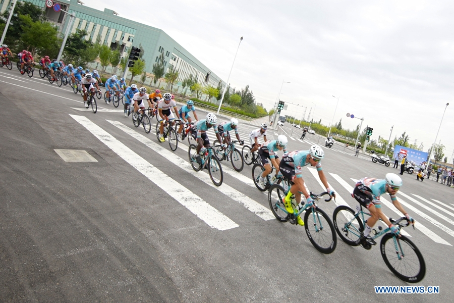 Cyclists compete in the twelfth stage of the Tour of Qinghai Lake in Yinchuan, northwest China's Ningxia Hui Autonomous Region, on August 3, 2018. (Xinhuanet Photo by Jia Haiyuan)