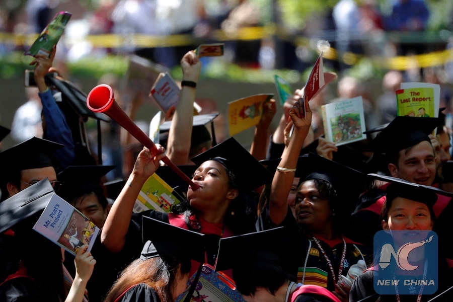 Students from the Graduate School of Education cheer as they receive their degrees during the 367th Commencement Exercises at Harvard University in Cambridge, Massachusetts, the United States, May 24, 2018. (REUTERS Photo)