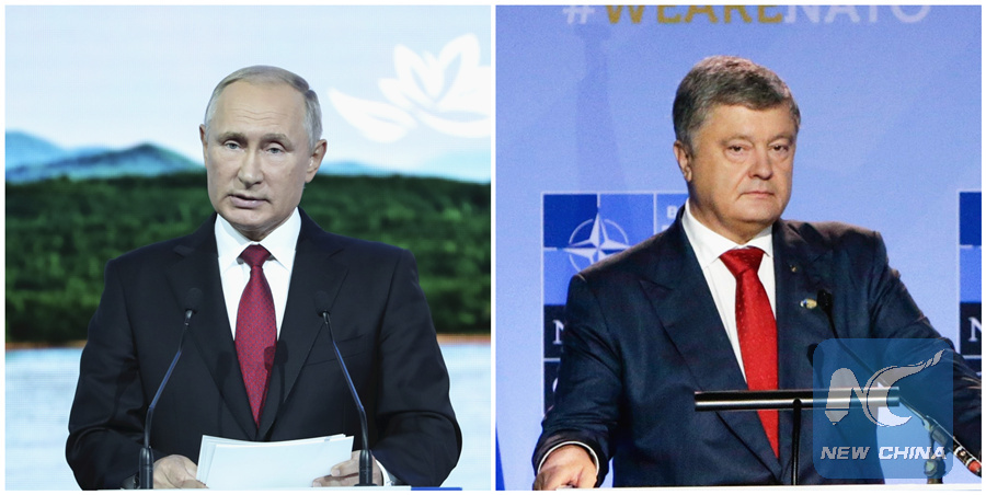 A combination of file photos show Russian President Vladimir Putin (L) and Ukrainian President Petro Poroshenko.