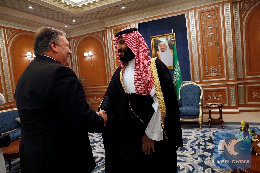 U.S. Secretary of State Mike Pompeo meets with the Saudi Crown Prince Mohammed bin Salman during his visit in Riyadh, Saudi Arabia, Oct. 16, 2018. (Xinhua/REUTERS)
