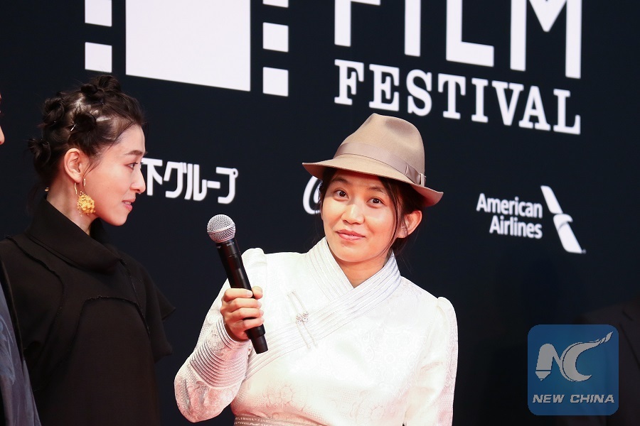 Chinese Director Degena Yun (R) is pictured on the red carpet for the opening ceremony of the 31st Tokyo International Film Festival, Tokyo, Japan, Oct. 25, 2018. (Xinhua/Peng Chun)