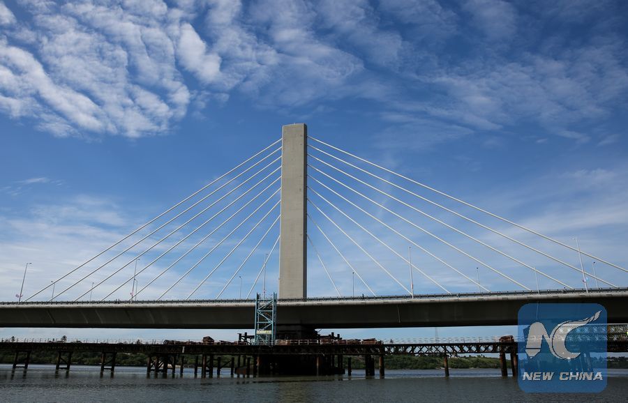 File photo shows a part of the Kigamboni Bridge constructed by a Chinese joint venture is seen in Dar es Salaam, Tanzania, on April 19, 2016. (Xinhua/Pan Siwei)