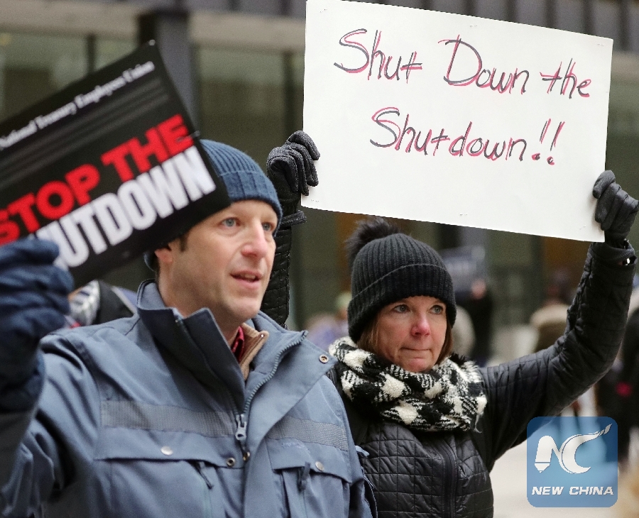 NEW YORK, Jan. 22 (Xinhua) -- David Lampert is taking a vacation he doesn't really desire. As an economist with the U.S. Treasury Department's office in New York City, he is one of the country's some 800,000 federal workers who are put on furlough or, even worse, forced to work without pay due to a partial government shutdown with no end in sight.
