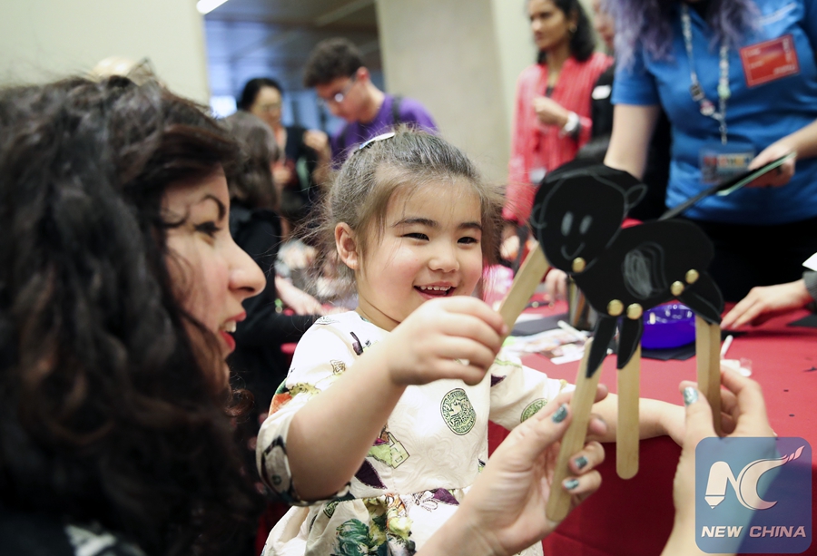 File Photo: A girl plays a puppet dog during a workshop of the "Lunar New Year Festival: Year of the Dog" at Metropolitan Museum of Art in New York, the United States, on Feb. 24, 2018. (Xinhua/Wang Ying)