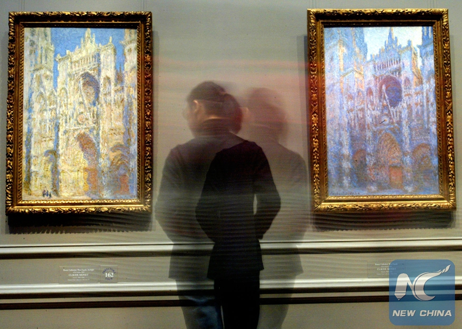 File Photo: A visitor admires Claude Monet's painting "Cathedrale de Rouen" at the National Art Gallery of the United States in Washington May 18, 2003. (Xinhua Photo/Lu Mingxiang)