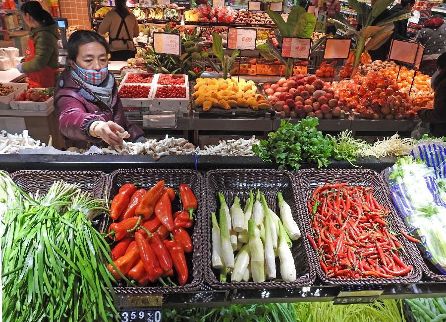 Customers buy vegetables at a supermarket in Lianyungang, east China's Jiangsu Province, Jan.10, 2019. (Xinhua)