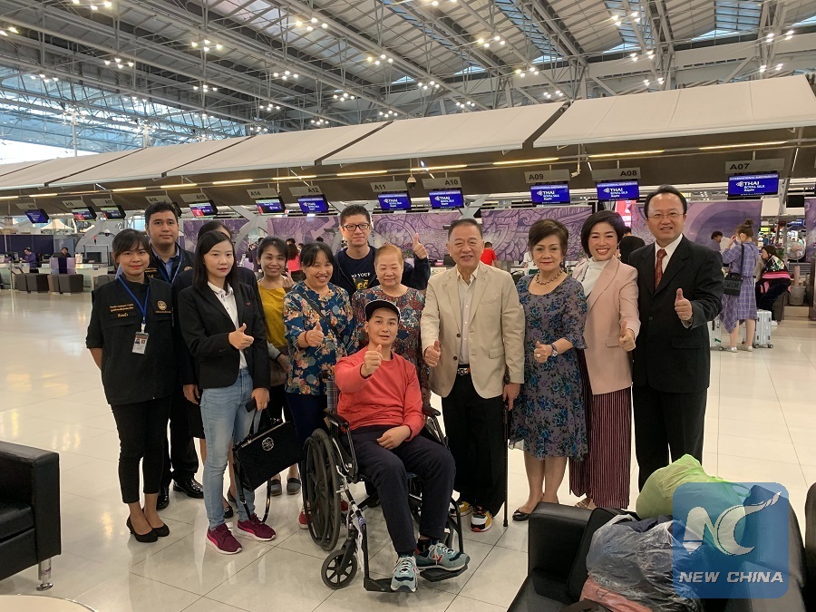 BANGKOK, March 10 (Xinhua) -- Zheng Jiu arrived at Bangkok's Suvarnabhumi Airport on Feb. 8 with his mother Ma Daifeng to travel back to China, after spending 1,271 in Thailand since the Aug. 17, 2015 Bangkok bombing blast.
