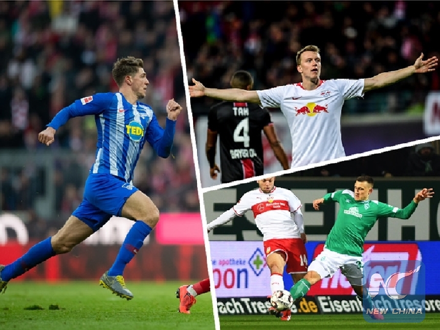 Midfielder Maximilian Eggestein (22/Werder Bremen) and the defenders Niklas Stark (23/Hertha BSC) and Lukas Klostermann (22/RB Leipzig) played in respective Bundesliga matches. (Xinhua)