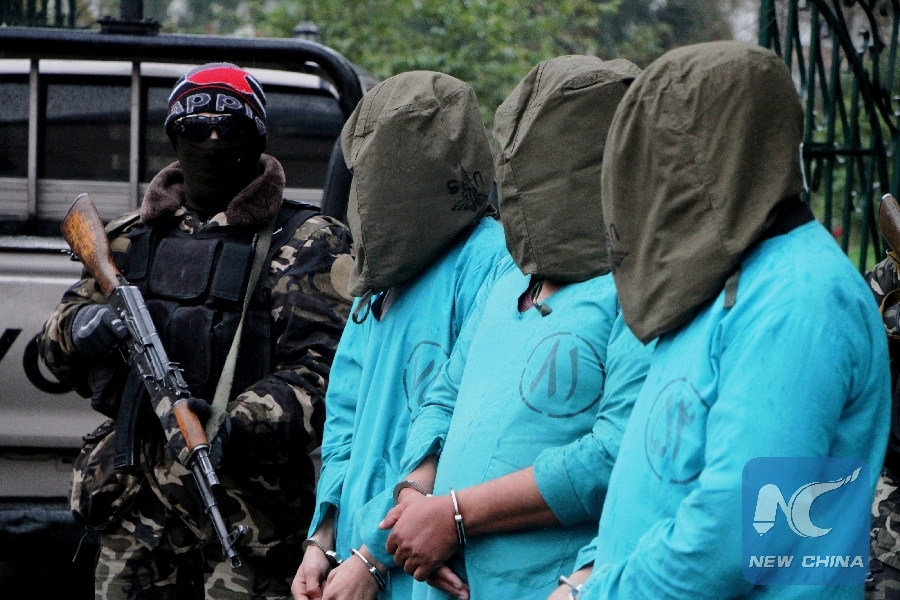 File Photo: Suspected Taliban militants stand handcuffed in Nangarhar province, Afghanistan, Jan. 3, 2016. (Xinhua/Rahman Safi)