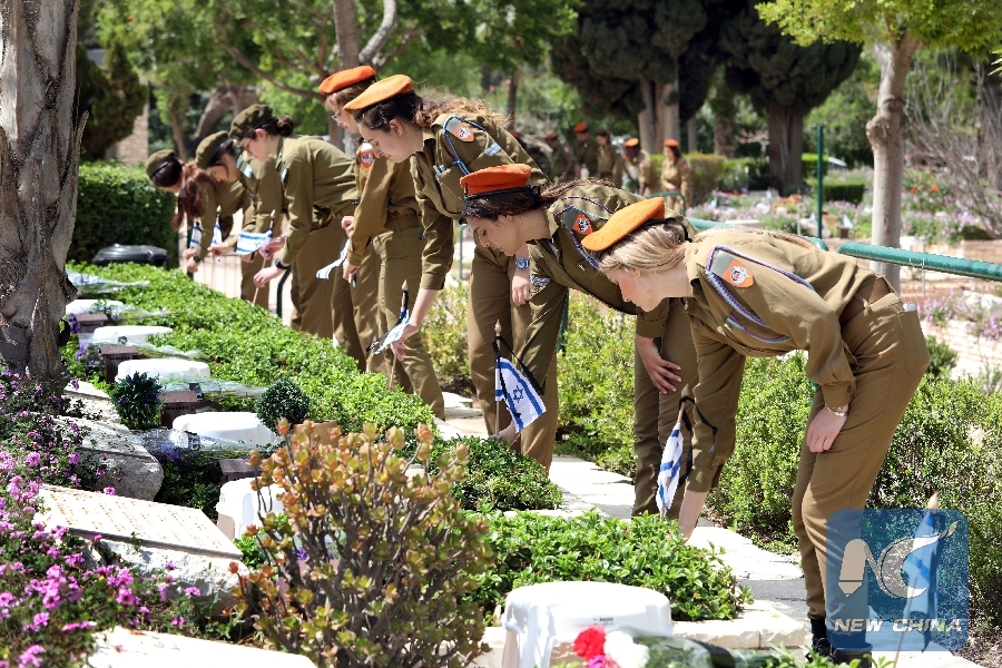 People visit graves of Israeli soldiers at Kiryat Shaul military cemetery in Tel Aviv, Israel, ahead of Memorial Day which commemorates Israel's fallen soldiers and terror victims, on May 7, 2019. (Xinhua/JINI/Gideon Markowicz)