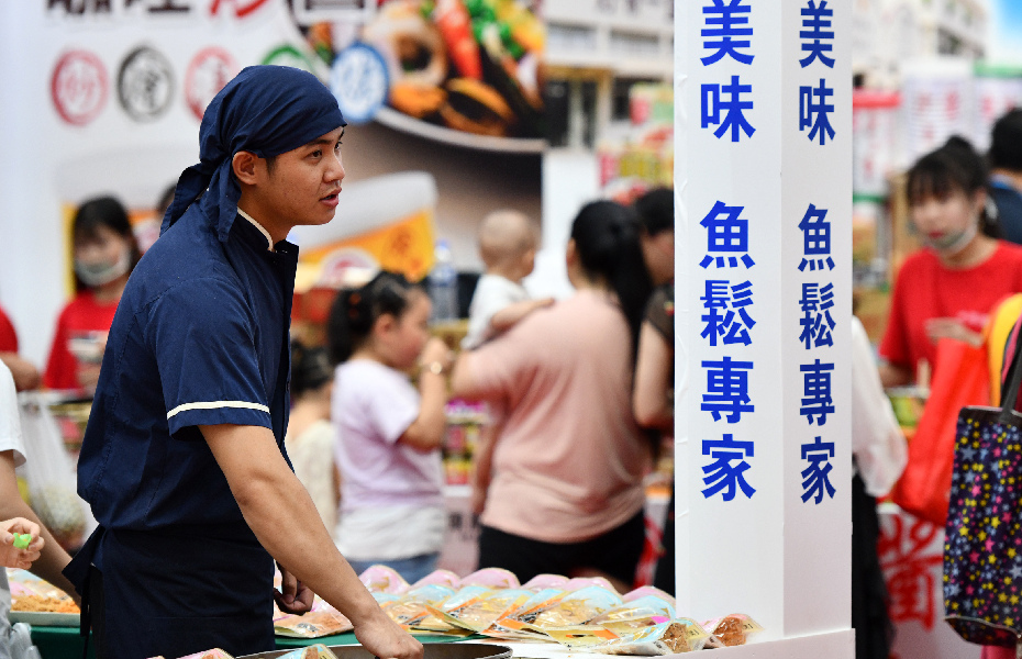 Photo taken on July 4, 2019 shows Taiwan food booth at the Tianjin-Taiwan trade fair. (Xinhua/Li Ran)