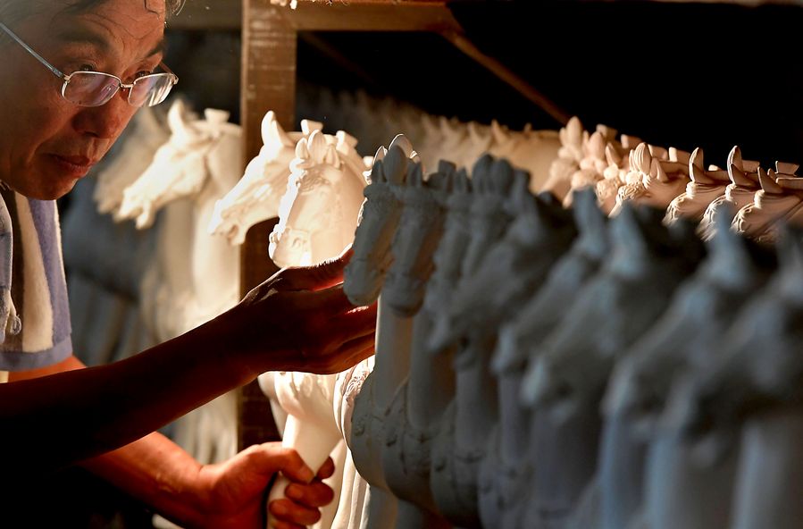Gao Shuiwang, a 61-year-old master craftsman, has been devoting himself over the past four decades to studying and making fine Tang Sancai. As one of the few who has mastered the essence of making the pottery, Gao earned the title of an inheritor of making Tang Sancai. Some of his creations have not only won awards, but also been collected by about 50 museums at home and abroad.