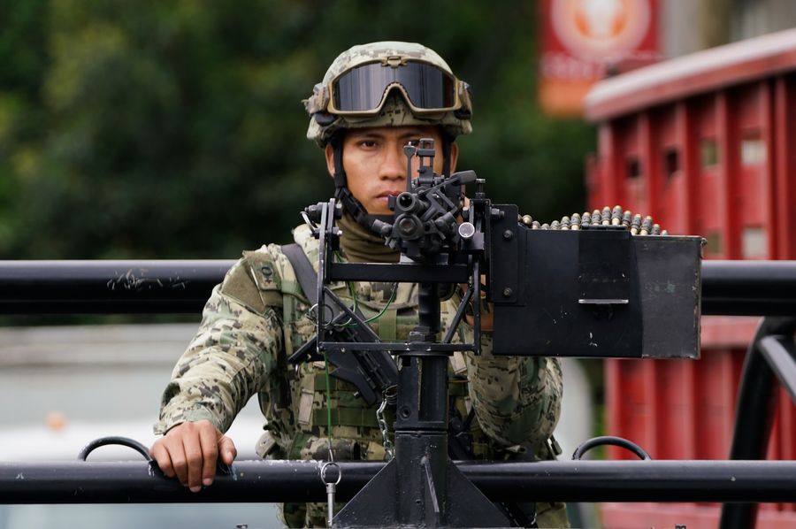 A Mexican Navy member stands guard during an operation in Mexico City, capital of Mexico, July 20, 2017. (Xinhua/Francisco Canedo)