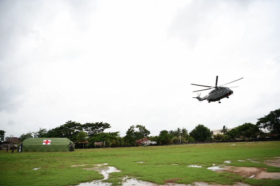 In the northern suburbs of the Lao capital Vientiane, the Chinese and Lao army men launched humanitarian and medical joint rescue exercise, including drill design, action planning, staff formation, rescue operations, and material supply.