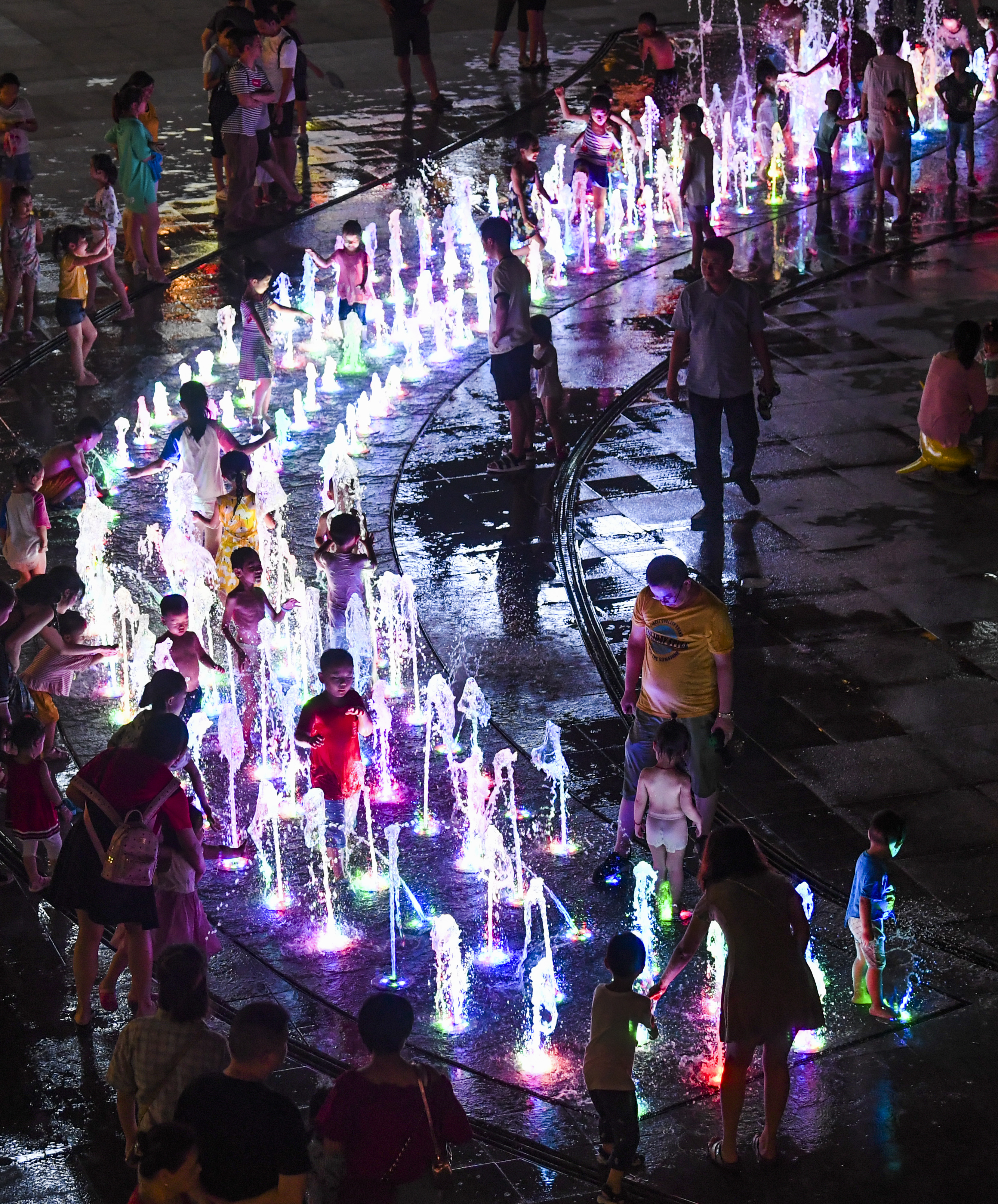 Children paddle at a music fountain in Nan'an District of SW China's Chongqing Municipality. (Xinhua/Wang Quanchao)