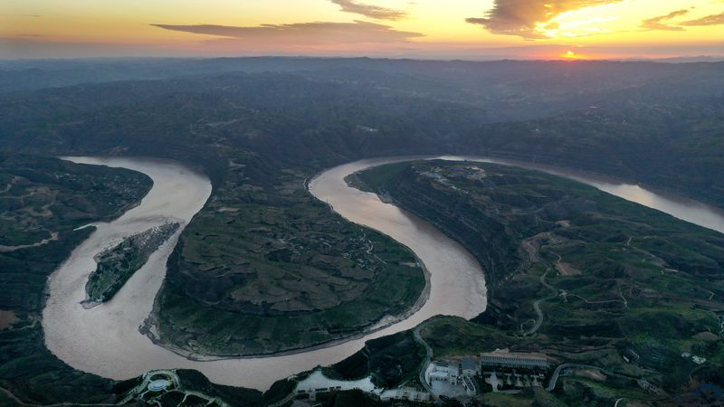 The Qiankunwan river bend along the Yellow River, China's second-longest waterway, on the border between Yanchuan County, northwest China's Shaanxi Province and Yonghe County, north China's Shanxi Province, Aug. 14, 2019. (Xinhua/Tao Ming)