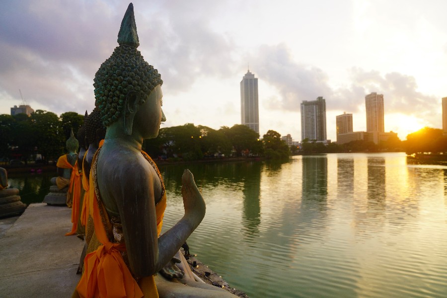 Photo taken on May 27, 2019 shows Beira Lake at sunset in Colombo, capital of Sri Lanka. (Xinhua/Tang Lu)