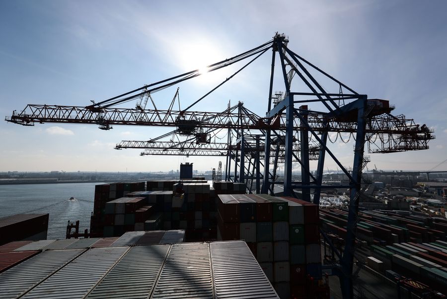 A view of the port area of Hamburg, Germany. (Xinhua/Shan Yuqi)