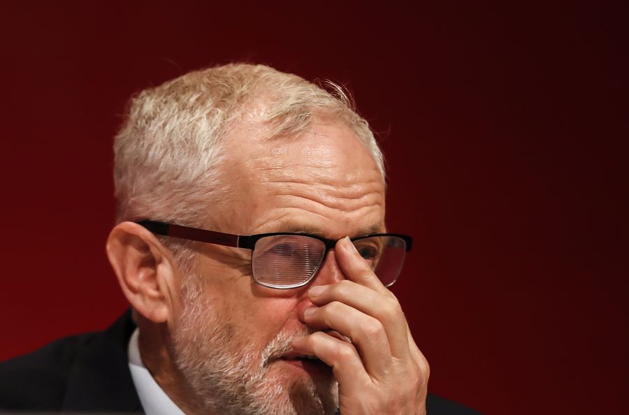 British Labour Party leader Jeremy Corbyn listens as he attends the Labour Party Annual Conference 2019 in Brighton, Britain on Sept. 21, 2019. (Xinhua/Han Yan)