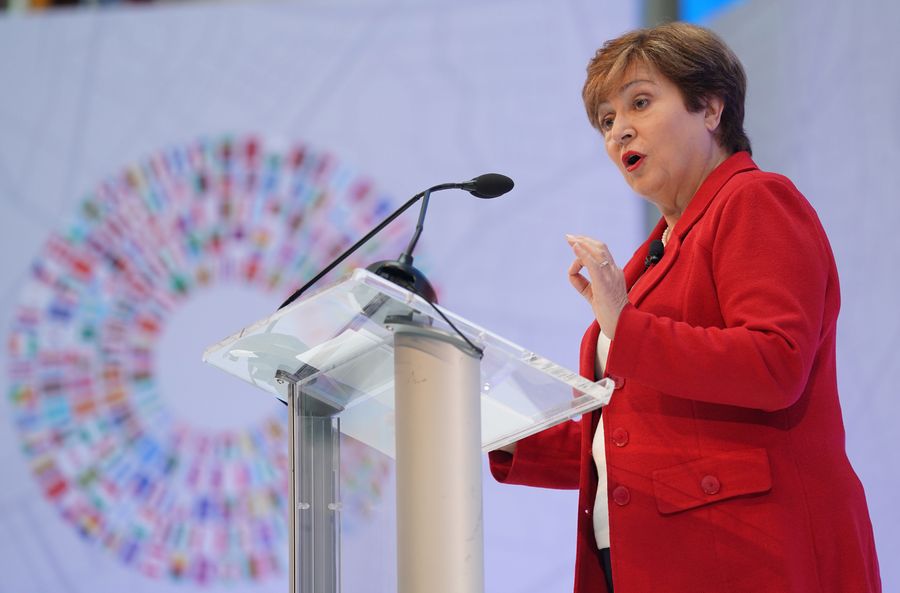 Kristalina Georgieva, Managing Director of the International Monetary Fund (IMF), delivers a speech in Washington D.C., the United States, Oct. 8, 2019. (Xinhua/Liu Jie)