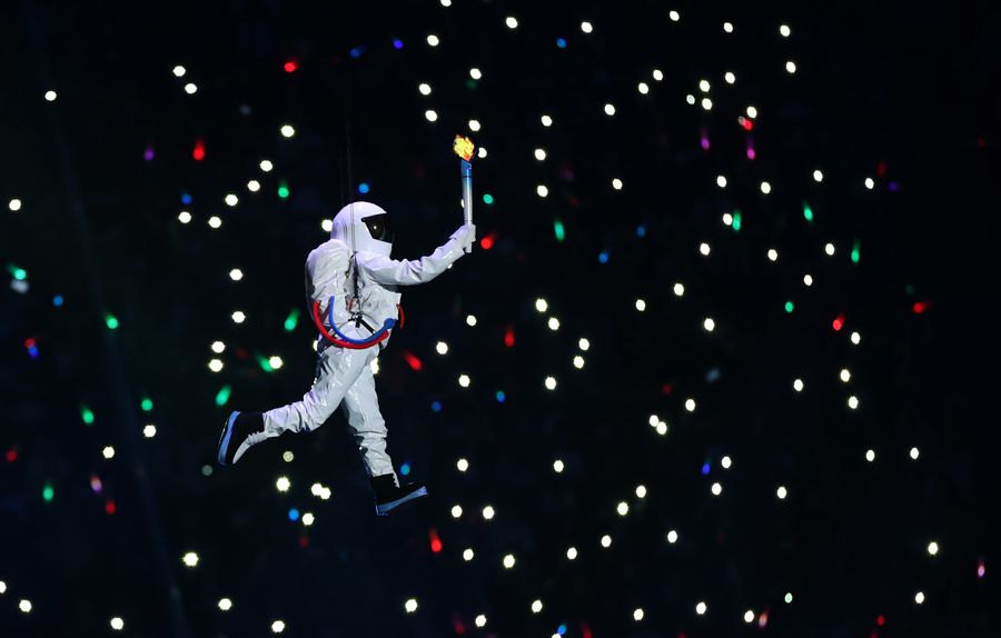 The cauldron is lit during the opening ceremony of the 7th International Military Sports Council (CISM) Military World Games in Wuhan, capital of central China's Hubei Province, Oct. 18, 2019.(Xinhua/Jiang Kehong)