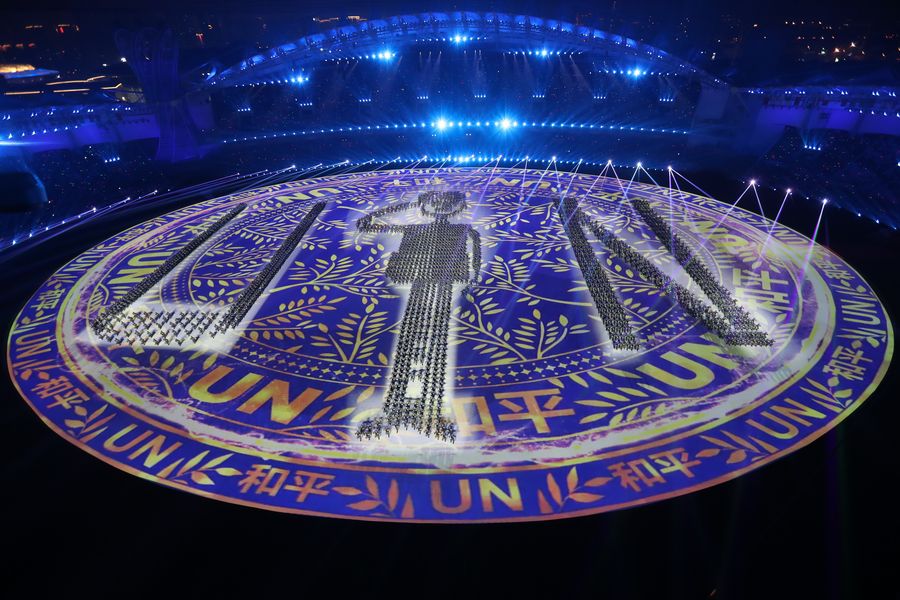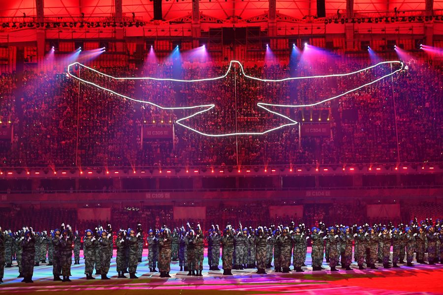 Photo taken on Oct. 18, 2019 shows the performance during the opening ceremony of the 7th International Military Sports Council (CISM) Military World Games in Wuhan, capital of central China's Hubei Province.(Xinhua/Chen Yehua)