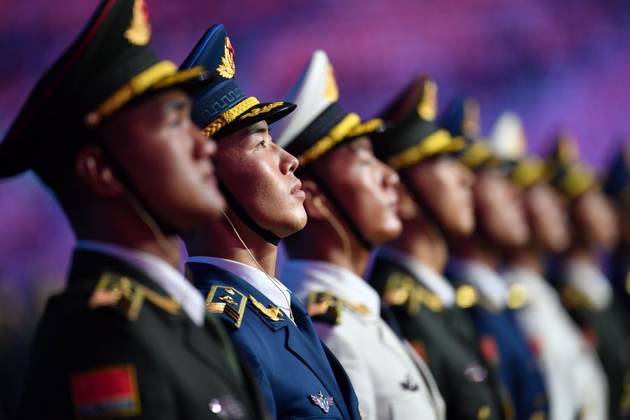 Soldiers and volunteers get ready for the opening ceremony of the 7th CISM Military World Games in Wuhan, capital of central China's Hubei Province, Oct. 18, 2019. (Xinhua/Jin Liangkuai)