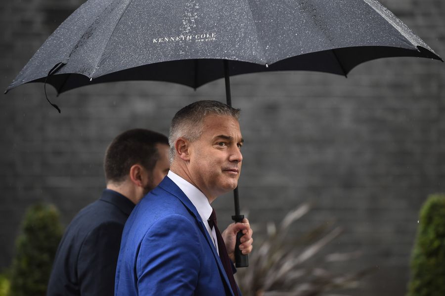 British Brexit Secretary Stephen Barclay leaves 10 Downing Street in London, Britain, Oct. 21, 2019.(Photo by Stephen Chung/Xinhua)