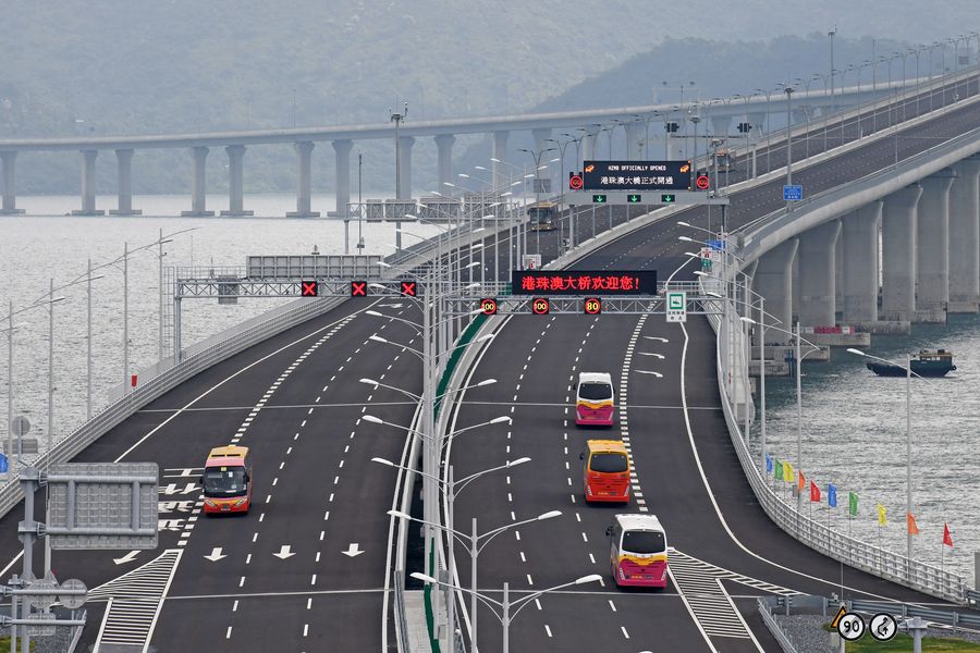 Launched on Oct. 23 last year, the 55-km bridge, known as the longest bridge-and-tunnel sea crossing in the world, links China's Hong Kong Special Administrative Region (SAR), the city of Zhuhai of southern Guangdong Province and Macao SAR.