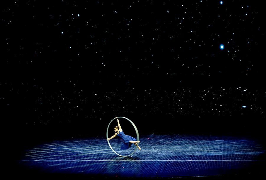 An acrobat performs during the 17th China Wuqiao International Circus Festival at Hebei provincial arts center in Shijiazhuang, capital of north China's Hebei Province, Oct. 28, 2019. (Xinhua/Mu Yu)