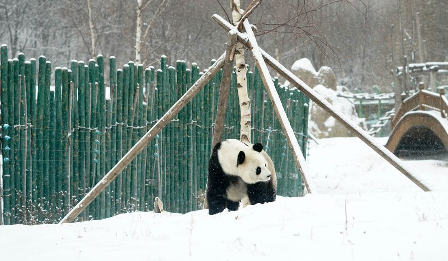 Amazed by the snowfall, Giant panda Sijia found herself a naughty baby cub again at the age of 13 years old.