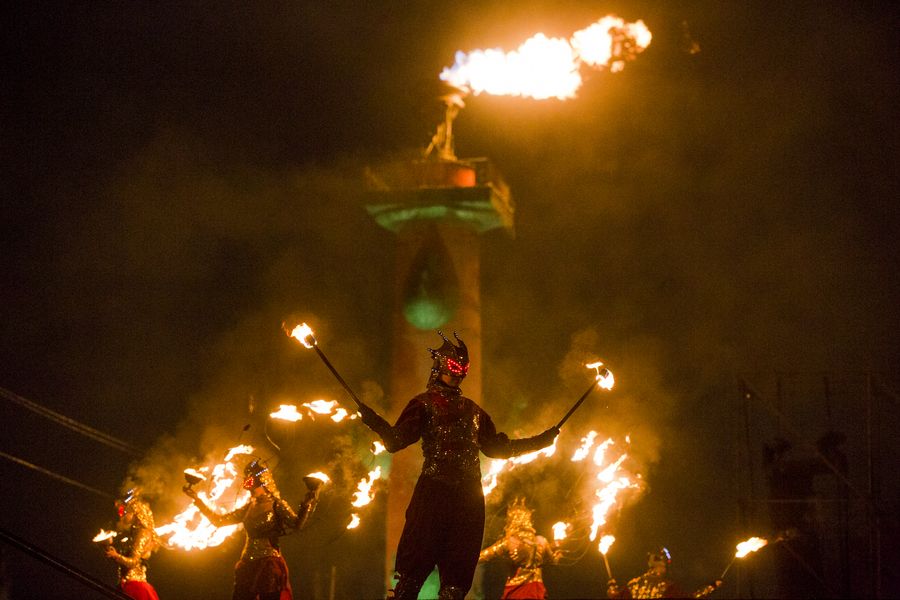 People perform during Orthodox Christmas celebrations in St. Petersburg, Russia, Jan. 7, 2020. (Photo by Irina Motina/Xinhua)