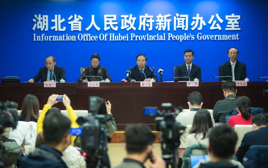 Photo taken on Jan. 22, 2020 shows a press conference held by the Hubei provincial government in Wuhan, capital of central China's Hubei Province. (Xinhua/Xiao Yijiu)
