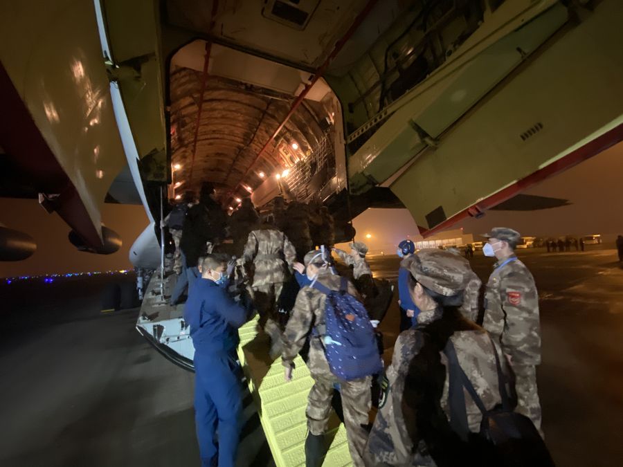 Photo taken on Jan. 24, 2020 shows a medical aid team of Army Medical University leaving for Wuhan in southwest China's Chongqing. On the Chinese Lunar New Year's Eve, a group of 150 medical workers from the Army Medical University left for Wuhan, the center of the novel coronavirus (2019-nCoV) outbreak, to provide medical aid. (Xinhua)