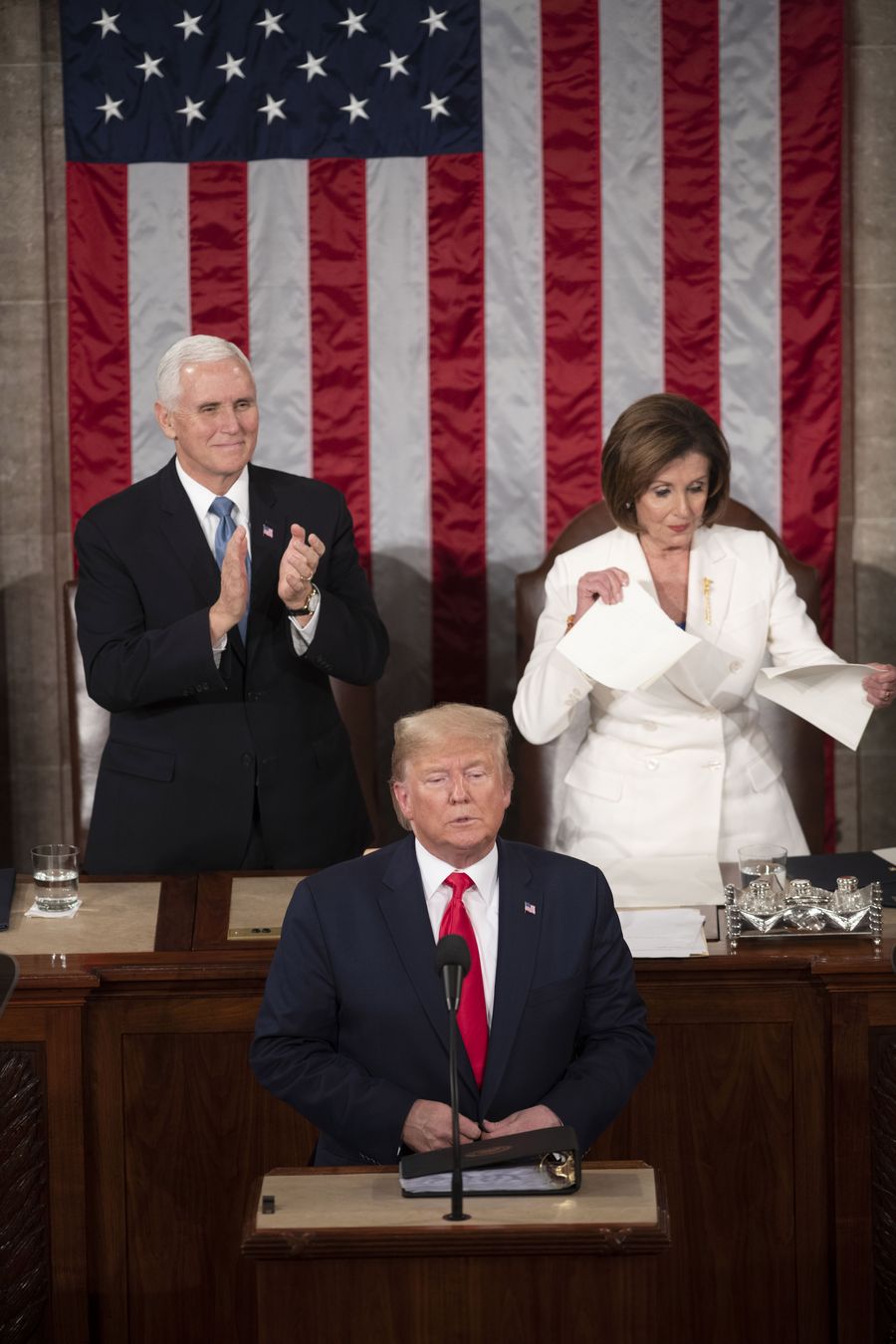 Two stunning moments may well capture the deteriorating relationship between the two sides: Trump, before starting his remarks, appeared to snub Pelosi's offer of a handshake; when the president finished speaking, the House's top Democrat ripped up her copy of the speech.