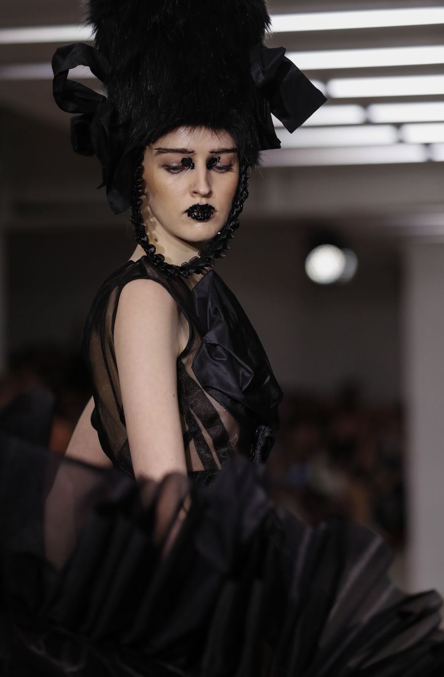 A model walks the runway at On|Off Presents... catwalk show during the London Fashion Week in London, Britain. (Xinhua/Han Yan)