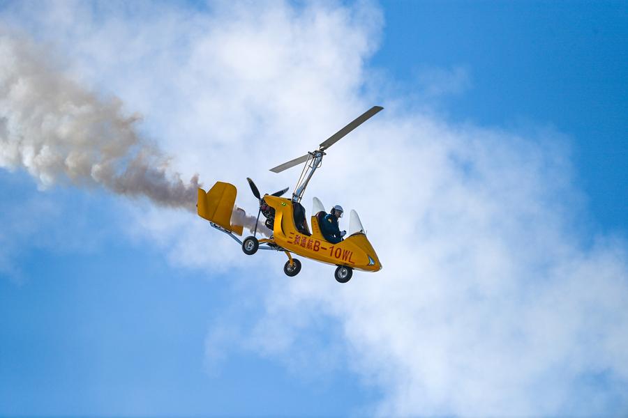 TIANJIN, Oct. 19 (Xinhua) -- The seventh China Helicopter Exposition, which concluded on Sunday in north China's Tianjin Municipality, featured a 5,000-square-meter pavilion dedicated to the low-altitude economy, attracting crowds with a striking orca-shaped eVTOL, an electric vertical take-off and landing aircraft developed in China.