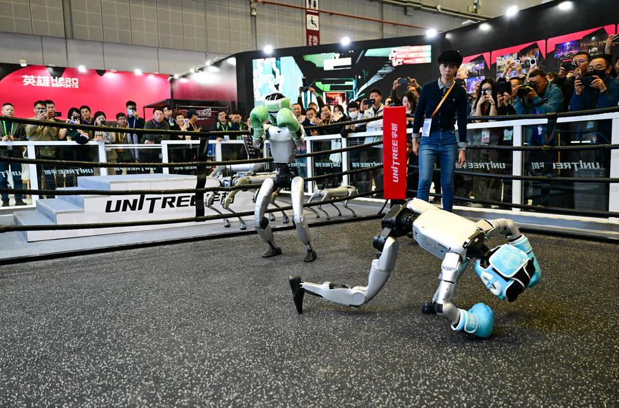 Two humanoid robots perform a session of fighting at civilian robotics company Unitree's booth during the China International Import Expo (CIIE) in east China's Shanghai, Nov. 6, 2025. (Xinhua/Cai Xiangxin)A journalist playfully fights with a humanoid robot at civilian robotics company Unitree's booth during the China International Import Expo (CIIE) in east China's Shanghai, Nov. 6, 2025. (Xinhua/Cai Xiangxin)Two humanoid robots perform a session of fighting at civilian robotics company Unitree's booth during the China International Import Expo (CIIE) in east China's Shanghai, Nov. 6, 2025. (Xinhua/Cai Xiangxin)Two humanoid robots perform a session of fighting at civilian robotics company Unitree's booth during the China International Import Expo (CIIE) in east China's Shanghai, Nov. 6, 2025. (Xinhua/Cai Xiangxin)Two humanoid robots perform a session of fighting at civilian robotics company Unitree's booth during the China International Import Expo (CIIE) in east China's Shanghai, Nov. 6, 2025. (Xinhua/Cai Xiangxin)Two humanoid robots perform a session of fighting at civilian robotics company Unitree's booth during the China International Import Expo (CIIE) in east China's Shanghai, Nov. 6, 2025. (Xinhua/Cai Xiangxin)■