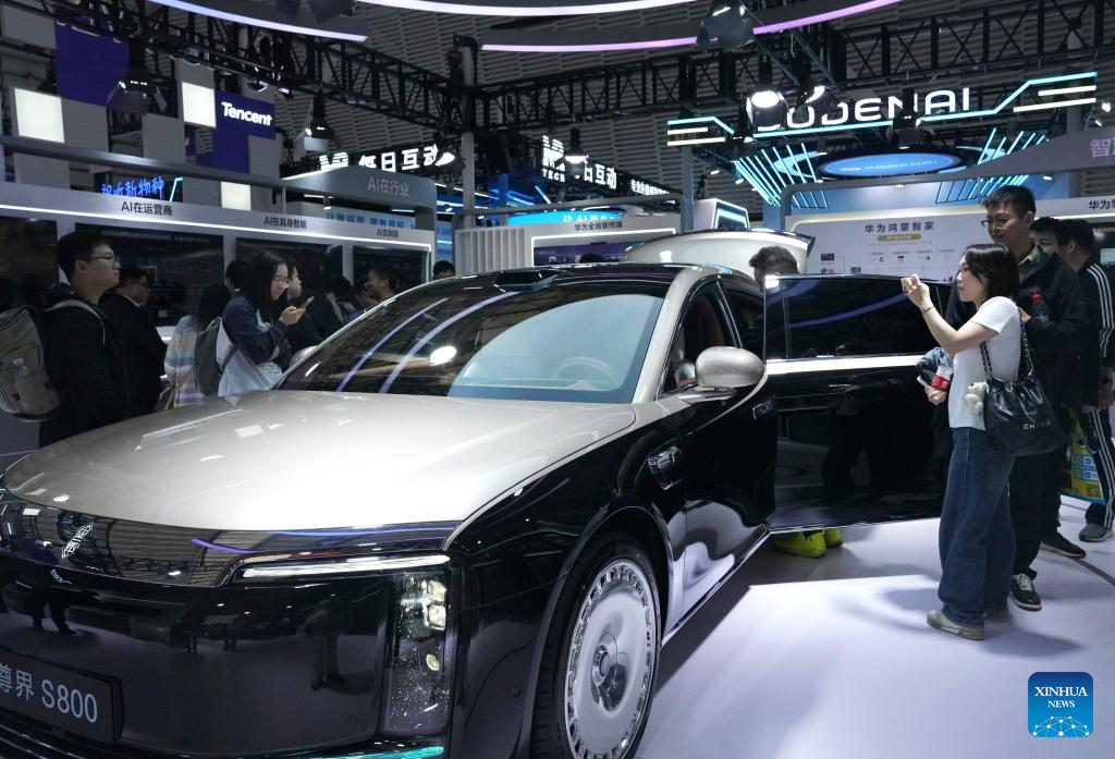 People visit the international enterprises section of the 2025 World Internet Conference (2025 WIC) Light of Internet Expo in Wuzhen, east China's Zhejiang Province, Nov. 6, 2025. The expo kicked off here on Thursday, showcasing more than 1,000 cutting-edge AI technology products from over 600 domestic and overseas enterprises. (Xinhua/Huang Zongzhi)