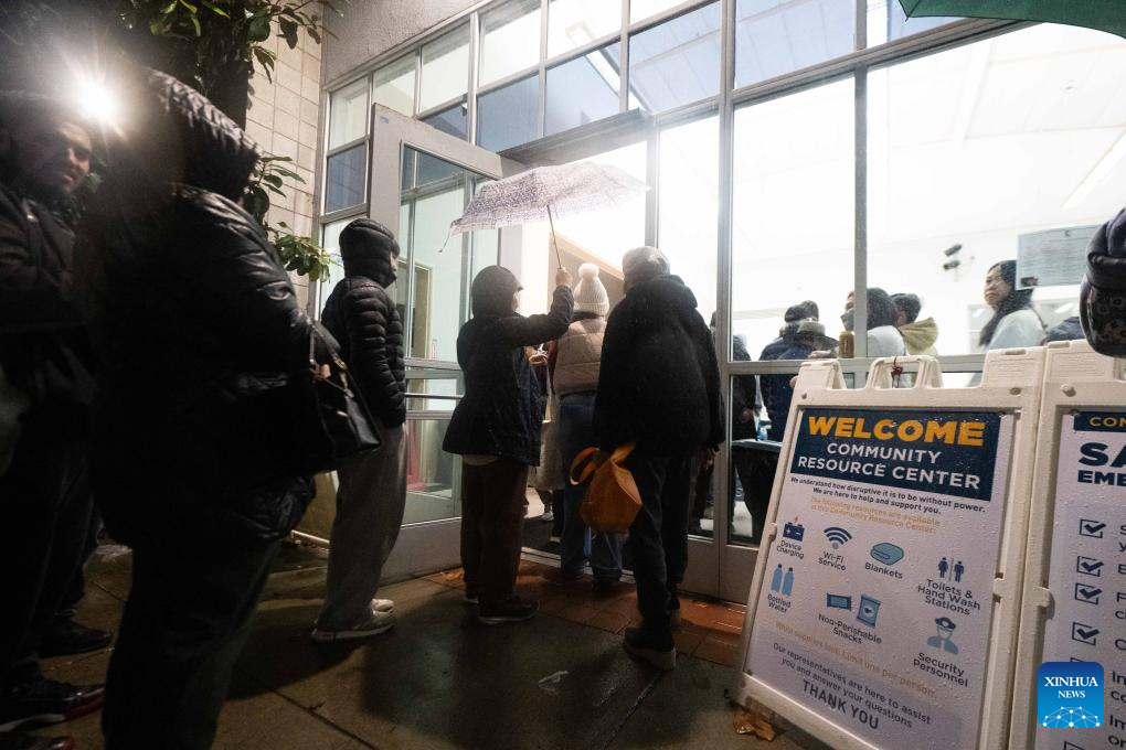 Residents affected by the power outage are pictured at a community resource center in San Francisco, California, the United States on Dec 21, 2025. A large-scale power outage struck San Francisco on Saturday, affecting about 130,000 households and businesses, or roughly one-third of all customers served by Pacific Gas and Electric Company (PG&E) in the city. (Photo by Ziyu Julian Zhu/Xinhua)