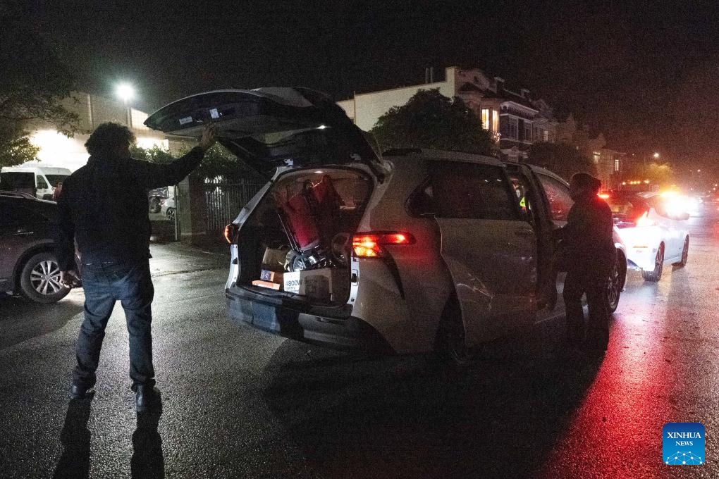 People get supplies from a community resource center for residents affected by the power outage in San Francisco, California, the United States on Dec 21, 2025. A large-scale power outage struck San Francisco on Saturday, affecting about 130,000 households and businesses, or roughly one-third of all customers served by Pacific Gas and Electric Company (PG&E) in the city. (Photo by Ziyu Julian Zhu/Xinhua)