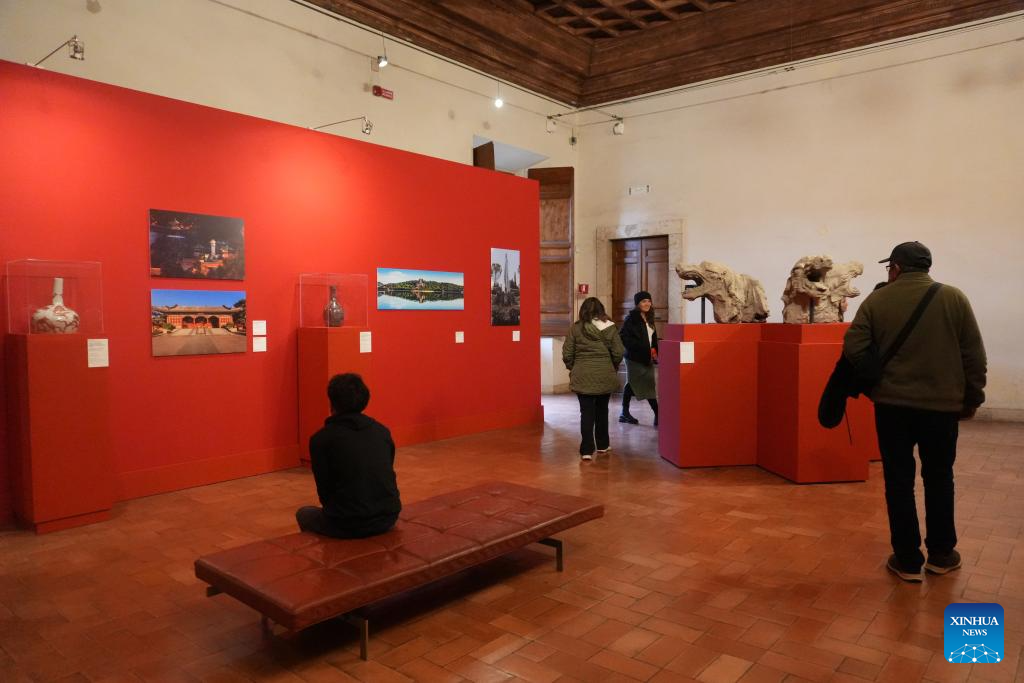 People visit the exhibition "Harmony Between Humanity and Nature: The Summer Palace at Villa d'Este" at Villa d'Este in Tivoli, Italy, on Dec. 16, 2025. The joint exhibition opened on Dec. 3 at Villa d'Este near Rome and will run until April 5, 2026. It marks the first collaborative exhibition since the Summer Palace and Villa d'Este signed a China-Italy World Heritage Site partnership agreement in November 2024. (Xinhua/Zhang Xinwen)