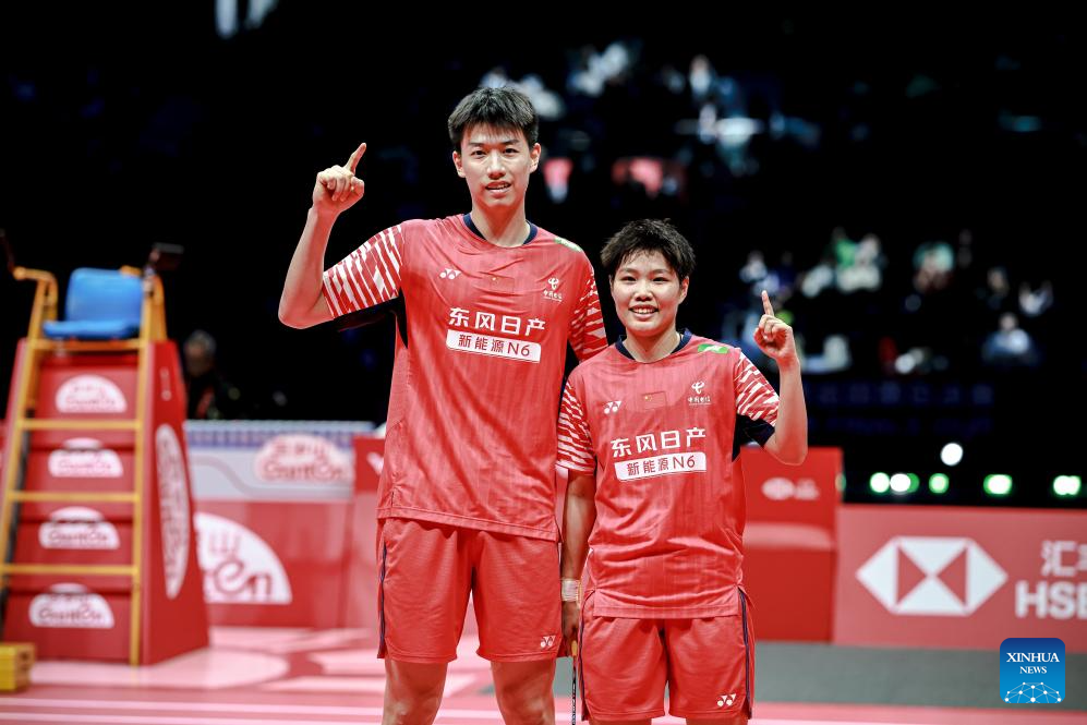 HANGZHOU, Dec. 21 (Xinhua) -- Feng Yanzhe and Huang Dongping won an all-Chinese final against Jiang Zhenbang and Wei Yaxin to secure the mixed doubles title at the Badminton World Federation (BWF) World Tour Finals on Sunday.