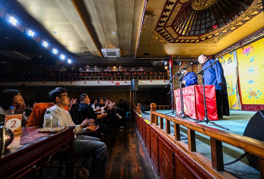 People watch Xiangsheng, or crosstalk comedy, at a tea house in north China's Tianjin, Dec. 5, 2025. (Xinhua/Zhao Zishuo)Audience take photos of tickets of Xiangsheng, or crosstalk comedy, at a tea house in north China's Tianjin, Dec. 4, 2025. (Xinhua/Zhao Zishuo)People watch Xiangsheng, or crosstalk comedy, in north China's Tianjin, Nov, 26, 2025. (Xinhua/Zhao Zishuo)Performers perform Xiangsheng, or crosstalk comedy, at a tea house in north China's Tianjin, Dec. 4, 2025. (Xinhua/Fu Tian)Performers perform Xiangsheng, or crosstalk comedy, at a tea house in north China's Tianjin, Dec. 4, 2025. (Xinhua/Fu Tian)People watch Xiangsheng, or crosstalk comedy, in north China's Tianjin, Nov, 26, 2025. (Xinhua/Zhao Zishuo)